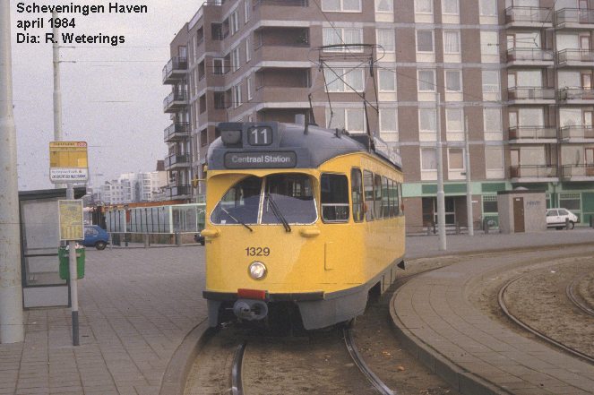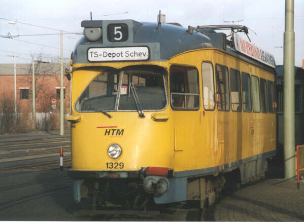Na een periode vanuit de remise Lijsterbesstraat te hebben gereden verhuisde de 1329 medio jaren '70 naar de remise Scheveningen. Vanuit deze remise werd de 1329 zowel los als gekoppeld ingezet (1 t/m 3), maar in de loop der jaren heeft de 1329 in feite op alle tramlijnen [behoudens lijn 16?] dienst gedaan. Toen in 1991 en 1992 op onregelmatige basis losse 1300'en op lijn 12 ingezet werden, was de 1329 ook op deze lijn aan te treffen (4).