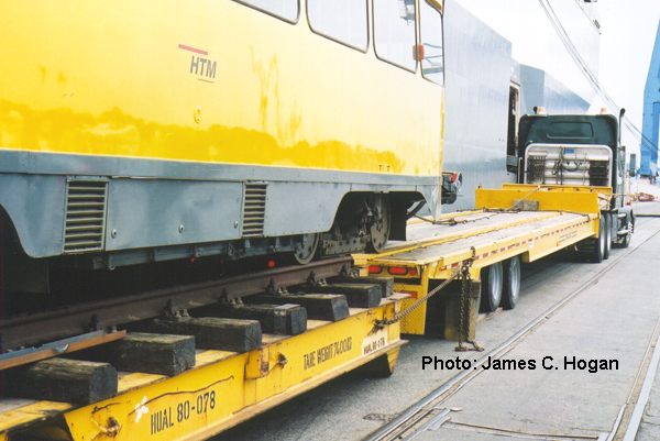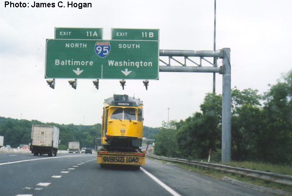 Op 1 juni 2001 arriveert de boot in Baltimore. Hier wordt de 1329 van boord gehaald en weer overgezet (24) op een vrachtwagen (25). Deze brengt (26) de PCC dezelfde dag naar zijn nieuwe onderkomen, het National Capitol Trolley Museum in Washington (27) alwaar de 1329 wordt afgeladen (28).