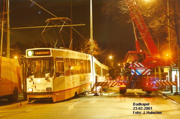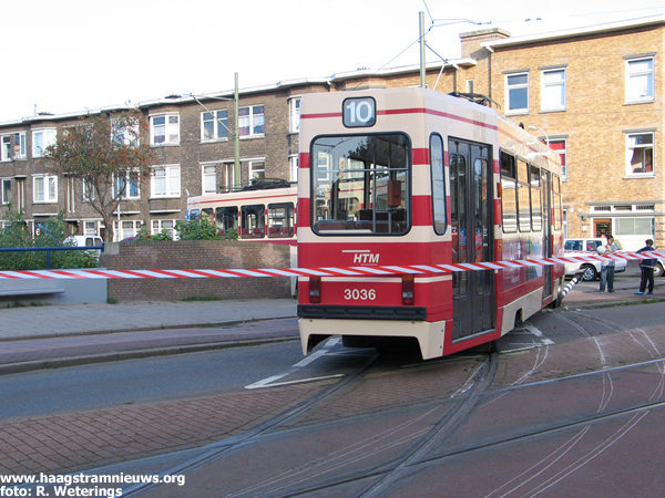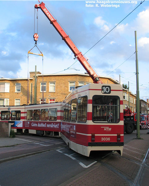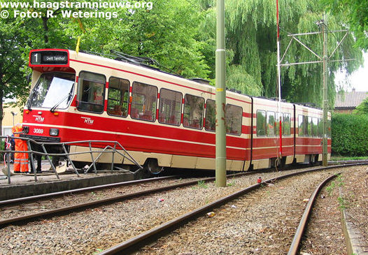 - Op 1 augustus 2003 ontspoort de 3089/1, rijdend richting Delft Tanthof, komende vanuit de bocht bij de Vrijenbanselaan. De tram komt met het eerste en tweede draaistel naast de rails te staan en komt met de A-bak half