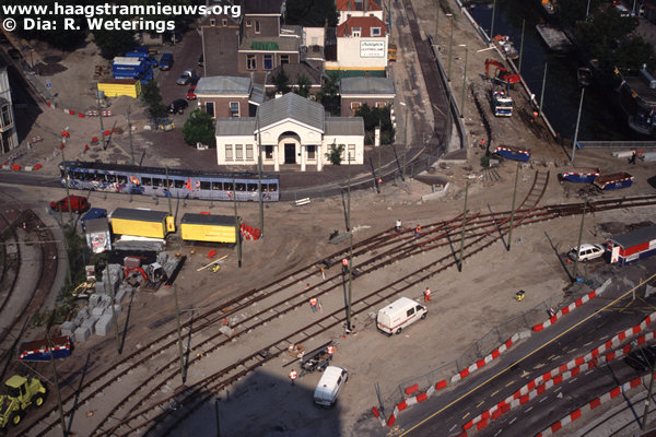 Medio augustus 2001 worden op het midden van het plein de nieuwe sporen gelegd en rijden de lijnen 8, 9, 10, 12/16 en 17 een aantal dagen een omleidingsroute. Lijn 11 wordt ingekort tot de halte Wouwermanstraat.
