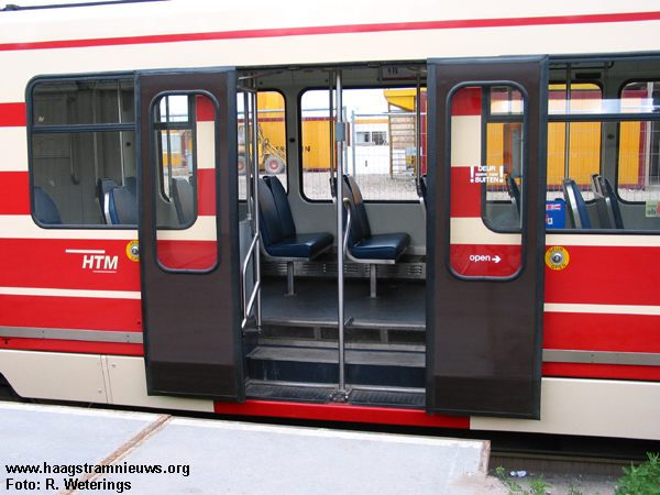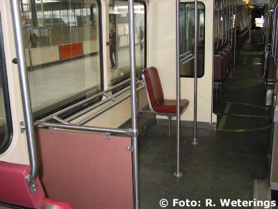 - Eind januari 2002 zijn de 3088 en 3119 in de werkplaats als proefwagens voorzien van een tweede sta-/ bagageruimte. Deze ruimte is gecreëerd in de B-bak aan de kant van de geleding. Daarvoor zijn de eerste drie tweepersoonsbanken verwijderd. Ook is er een zwarte stopknop vervangen door een type dat onder andere in de HTM bussen zit en in de C-bak van een tiental 3100'en. |