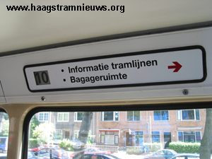 Alleen het lijnnummer is nog zichtbaar gelaten. Met de teksten "bagageruimte" en "informatie tramlijnen" wordt middels een rode pijl een verwijzing gemaakt.