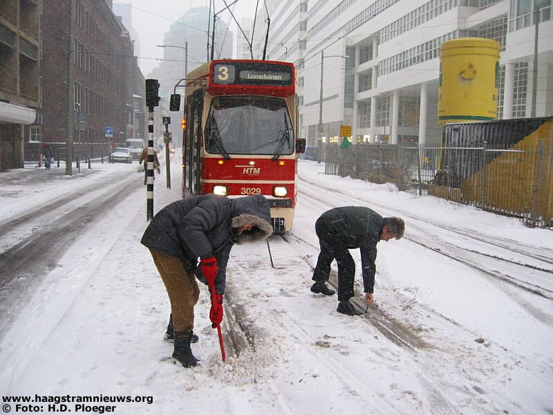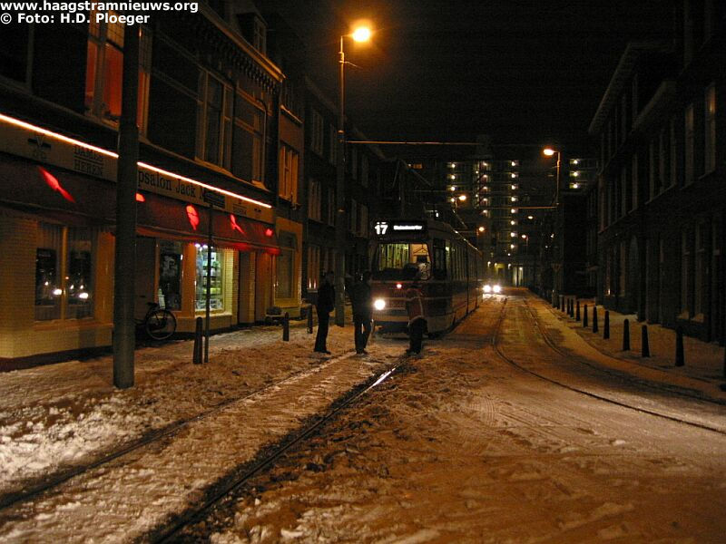 op de stoep tegen een hekwerk tot stilstand. Een kraanwagen van Blansjaar heeft de tram herspoord. Zo'n anderhalf uur na de hersporing is de 3089 op eigen kracht achteruit terug gereden naar 's-Gravenmade en vandaar