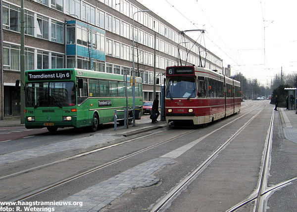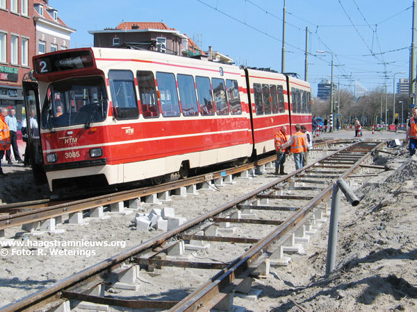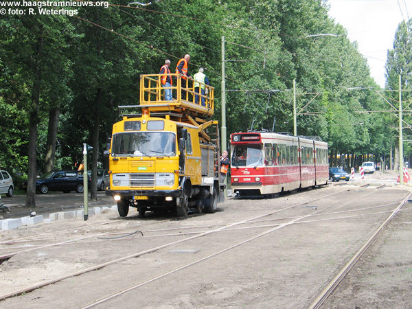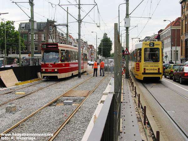 Op maandag 21 mei 2001 rijden de tramlijnen 3 en 7 tezamen met het wegverkeer vanaf aanvang dienst via de tijdelijke situatie.