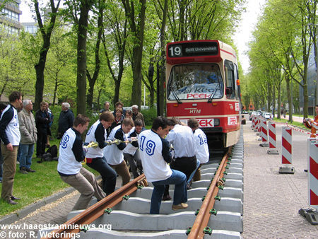 spoor wordt afgeladen. Iets na het middaguur wordt een aantal toespraken gehouden. Na de toespraken worden er diverse teams geformeerd voor een Tram Trek Wedstrijd. Het is de bedoeling dat de teams de tram