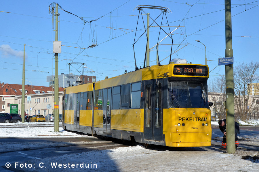 Aan het begin van vrijdagmiddag 12 februari 2021 ontspoort op de Statenlaan de 3024 met het eerste draaistel. Even later is op het middenspoor op de Laan van Meerdervoort ter hoogte van de remise Lijsterbesstraat de 3009 ontspoord