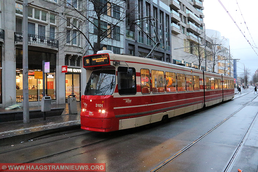 Als gevolg van een ernstig ongeval met een persoon ontspoort in de loop van zondagavond 24 maart 2024 3121 van lijn 1 rijdend richting Scheveningen Noord met het eerste draaistel op de kruising Carnegieplein /