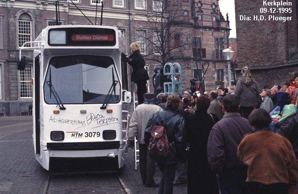Op 9 december 1995 wordt aan het Kerkplein de geschilderde Anti-discriminatietram 3079 onthuld door staatssecretaris Erica Terpstra.