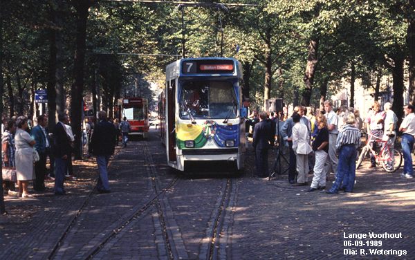 een verschillende kleur geschilderd, in feite de eerste voorzichtige schreden naar het volledig beplakken of schilderen van GTL's. Naast deze extra trams neemt de HTM ook deel aan een manifestatie op het plein voor