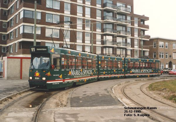 De allereerste volledig met reclame beplakte GTL is de 3091. De tram wordt eind april 1992 geheel beplakt met donkergroene stickers voor het Engelse warenhuis Marks & Spencer en komt op 29 april 1992 in dienst op lijn 9.