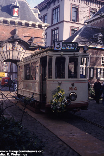 Op 16 februari 1989 viel het startschot voor de jubileumviering. Op het Binnenhof, voor de Grenadierspoort, stonden de paardetram 125 en laagdakker 164 opgesteld.