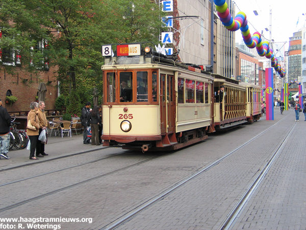 Op zaterdag 27 mei werd een historische tramoptocht gehouden over de route waar het allemaal in 1864 was begonnen. Voor de stoet was een deel van de route van de lijnen 7 en 8 tussen de Vijverberg en Scheveningen gereserveerd.