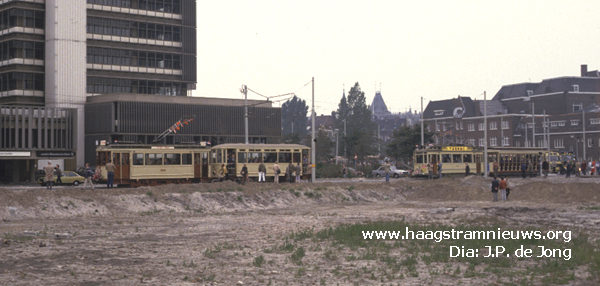 Ter hoogte van Vroom & Dreesman wordt de tram nog even losgekoppeld voor de fotografen.