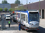 In de Alstom fabriek in Salzgitter (Duitsland) wordt hard gewerkt aan de totstandkoming van de trams. Eind januari 2006 wordt de 4001, getrokken door een Unimog, naar buiten gesleept.